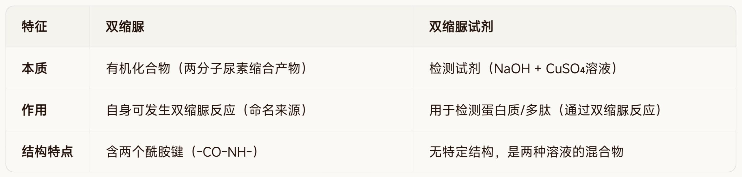 双缩脲本身因含两个酰胺键(可视为简化的肽键),也能与Cu²⁺发生此反应,故该反应以“双缩脲”命名。